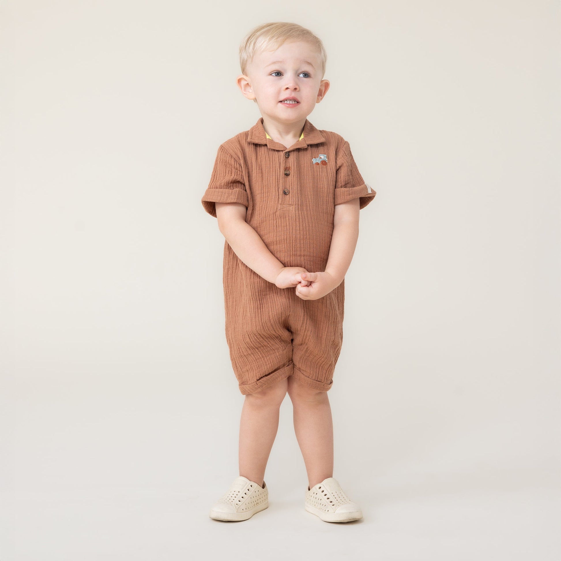 • Barboteuse en popeline effet lin unie
